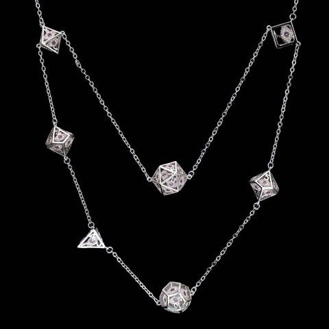 Dragon's Eye 7-die Necklace - Silver with Pink Gems