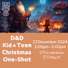 Come join us for a whimsy holiday one shot at D20 Games for the holidays! Our DM is looking for 6 brave adventurers to wander a winter wonderland. Event starts at 2:00pm and is for kids and teens. $70 in advance and $75 day of.