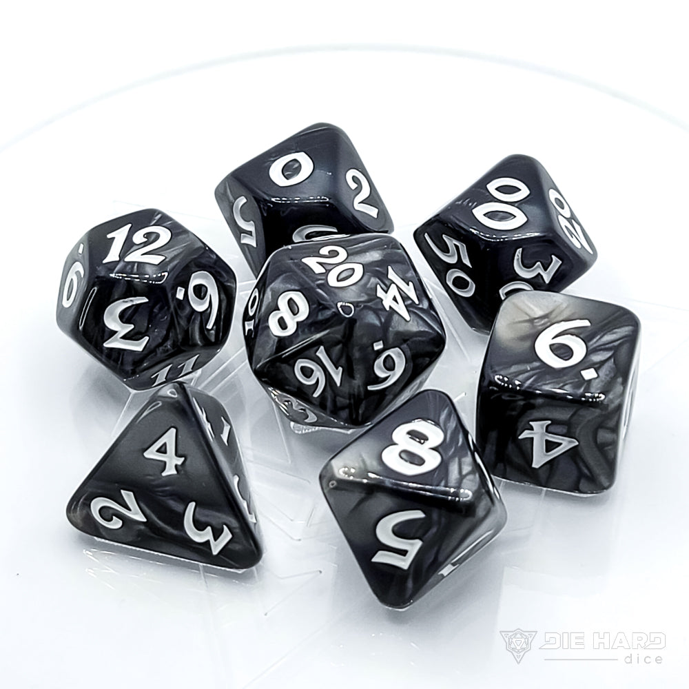 Elessia dice are a new, softer design from Die Hard Dice! Similar to our Avalore shape, Elessia dice feel like smooth river stones shaped by ancient waters over centuries.