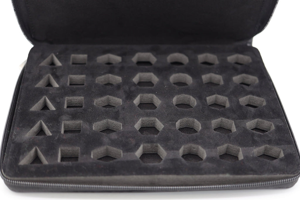 This Dice Case has a sturdy zipper and a foam insert with dice cutouts. It can hold up to 5 RPG sets of dice in the foam to keep your dice from rolling around.
