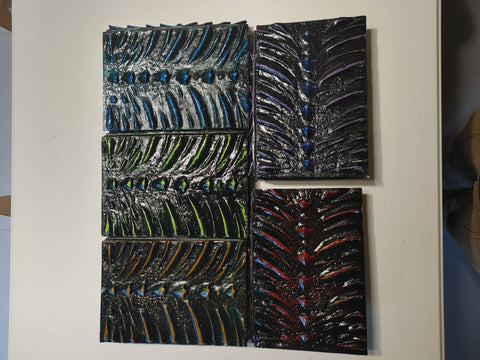 These journals feature a super thick, hand-painted, resin cover (that almost feels like wood!) on the front, back and even the spine, along with a glass-like Dragon Eye. Filled with high quality unlined craft paper, perfect for notes, drawings, or anything you can think of; and easily refillable, as this cover will likely last a lifetime. Each book weighs about 2lb.